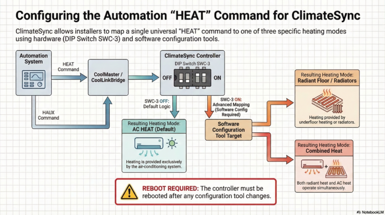 By default, when an Automation system sends a HEAT command via CoolMaster / CoolLinkBridge, ClimateSync triggers: